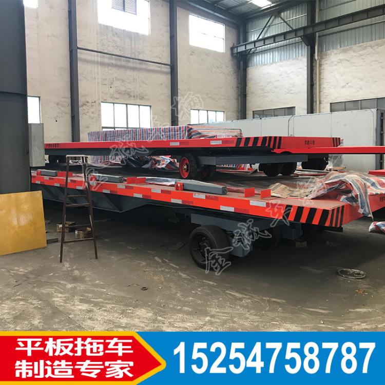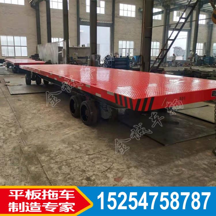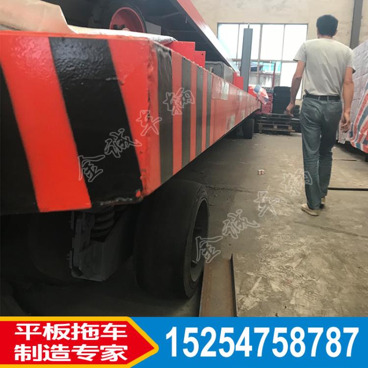 此款平板車是一種用于工廠、物流、港口運輸集裝箱的牽引車輛。載重量為50噸(可根據客戶的需求定制),金誠牽引架使得減小了車輛啟動和停止的時候的沖擊力,有效的保護了車輛安全,金誠牽引架高度可根據不同過廠家不同型號的牽引車來調節高度。前懸轉向,后懸定向,后懸為雙懸掛,高強度緩沖彈簧,在運輸過程中,路面不平仍能如履平地。結構簡單,適用方便,保養方便,承載能力大,使用壽命長等優點。大量使用在機械、冶金、倉儲運輸等多個行業,配合牽引車使得平板在各個領域有著舉足輕重的地位。